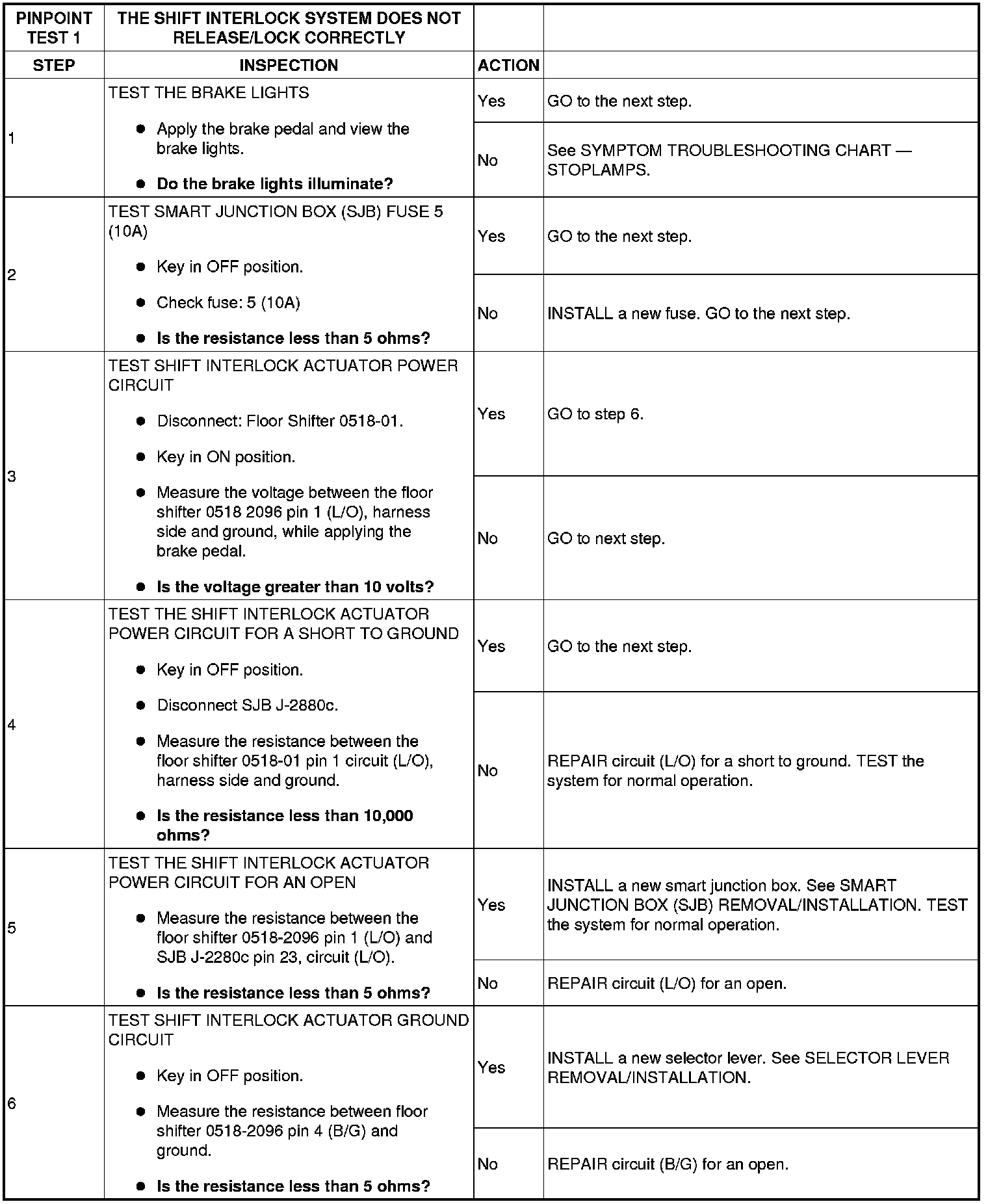 PINPOINT TEST 1: THE SHIFT INTERLOCK SYSTEM DOES NOT RELEASE/LOCK CORRECTLY