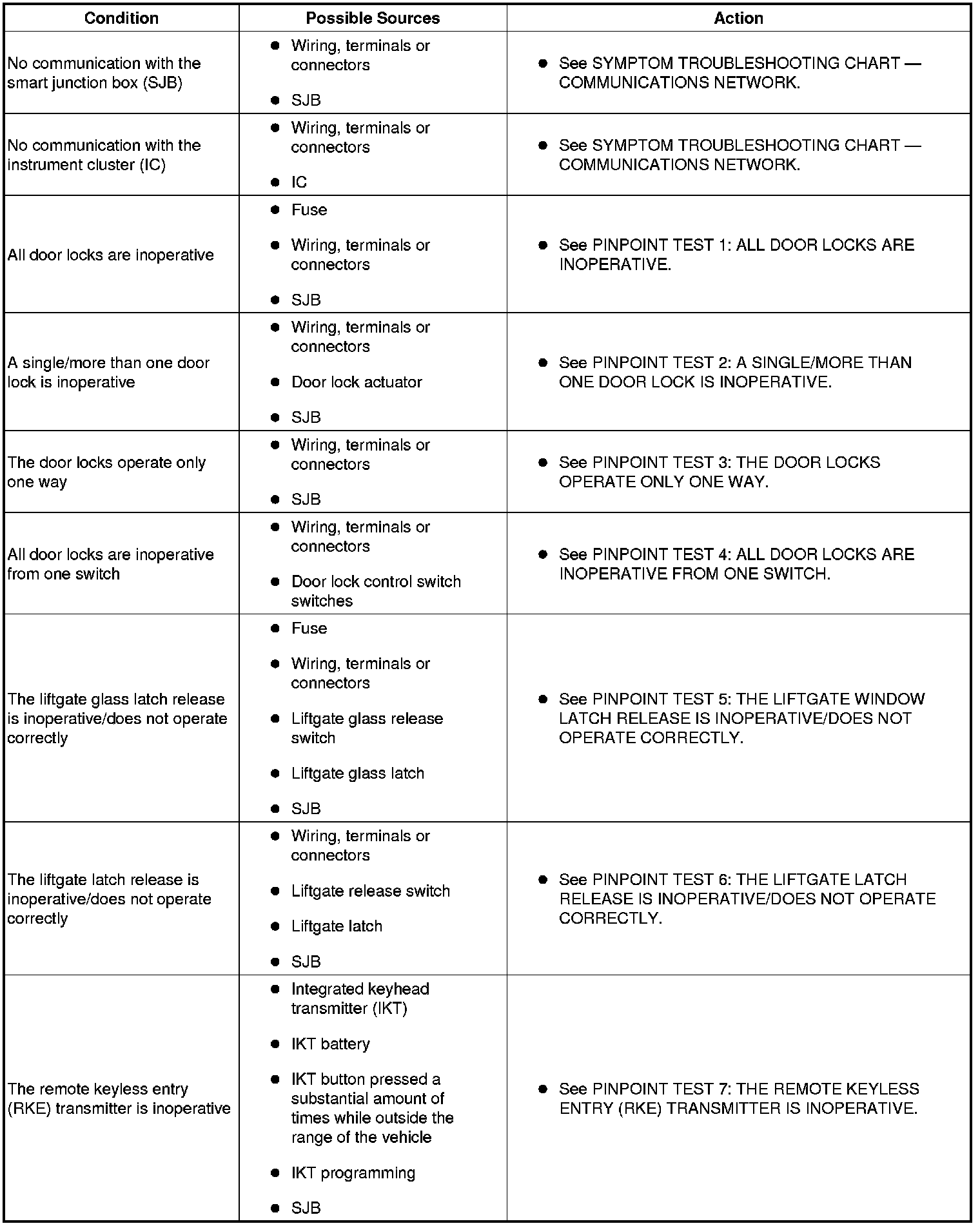 SYMPTOM TROUBLESHOOTING CHART - POWER DOOR LOCKS/KEYLESS ENTRY REMOTE TRANSMITTER