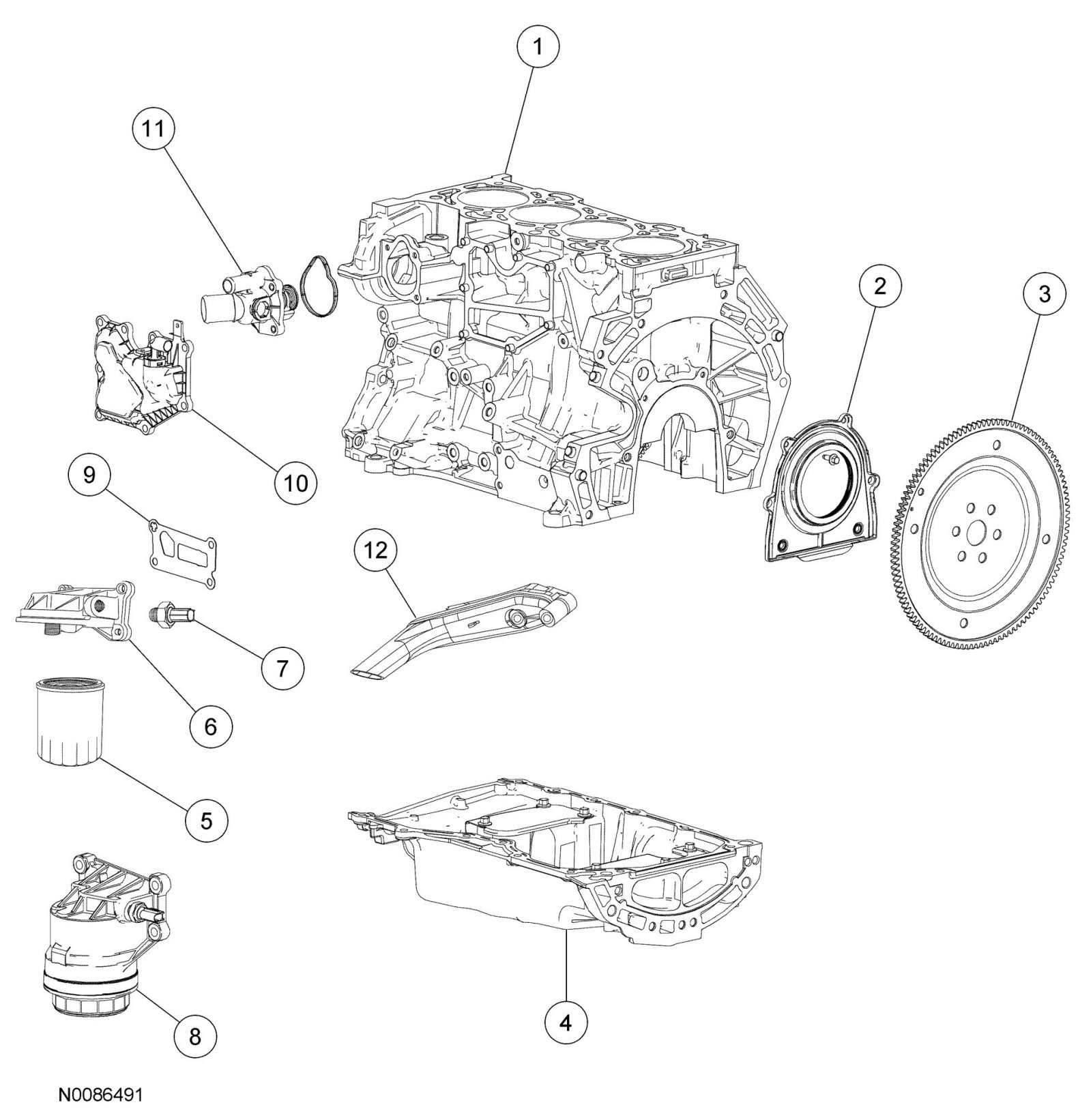 LOWER ENGINE BLOCK EXPLODED VIEW - 2.5L