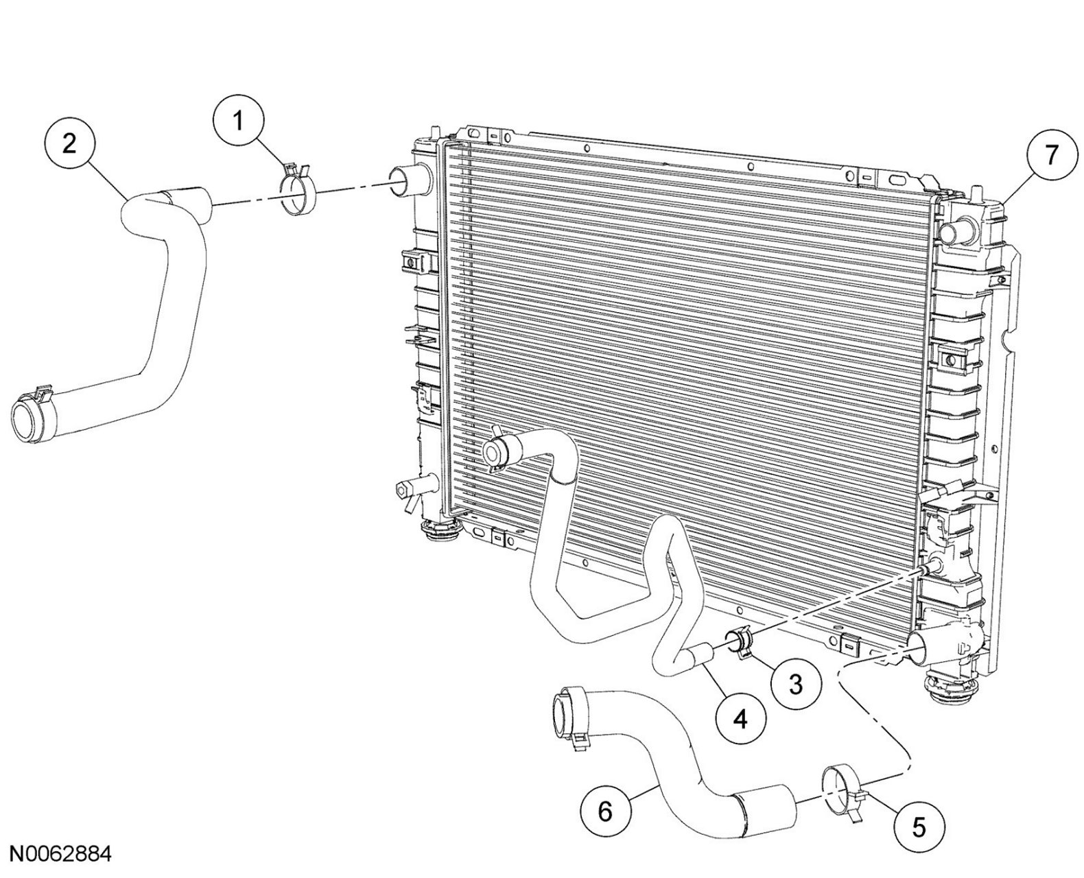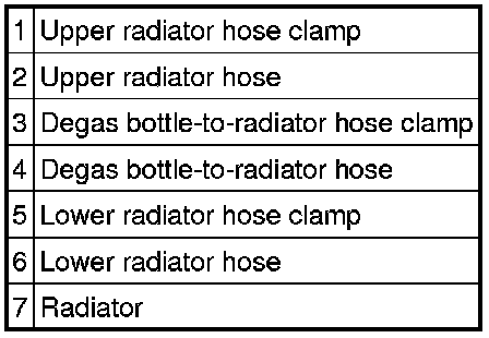 4. Disconnect the lower degas bottle-to-radiator hose from the radiator.