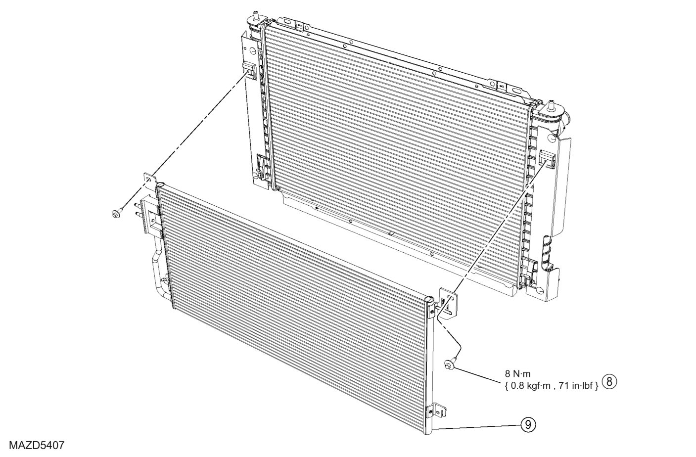 - To install, tighten to 8 Nm {.0.8 kgf-m, 71 in-lbf}.