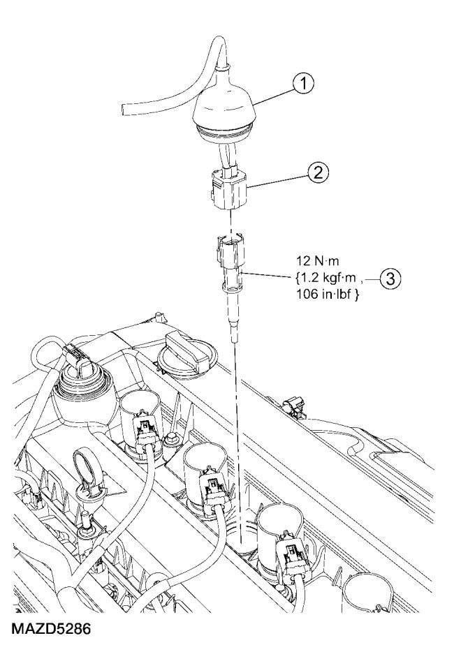 - To install, tighten to 12 Nm {1.2 kgf-m, 106 in-lbf}.