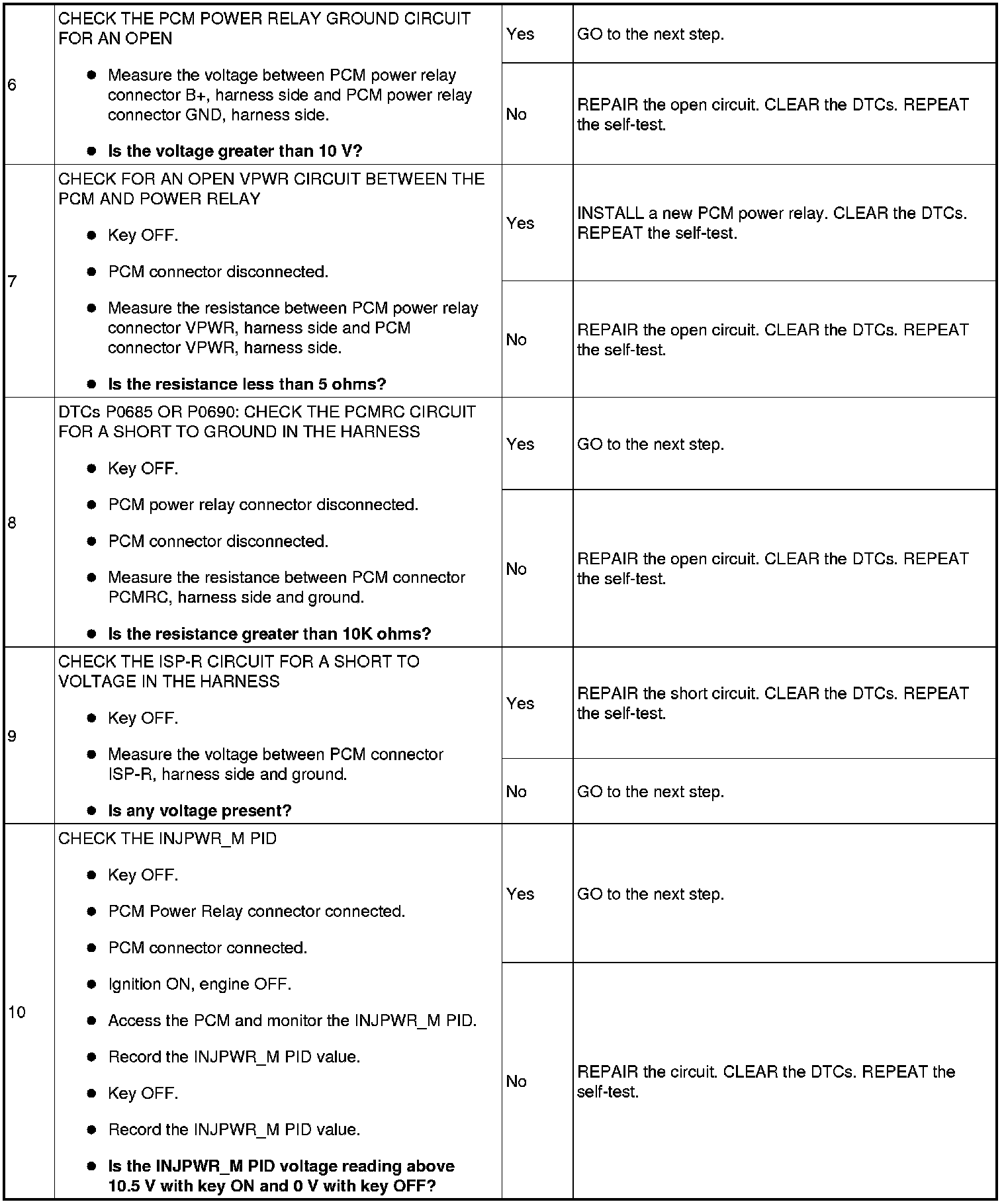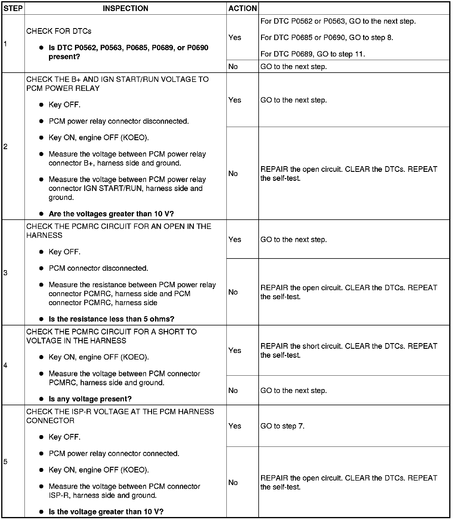 - Harness circuits: B+, IGN START/RUN, INJPWRM, ISP-R, PCMRC, VPWR and GND