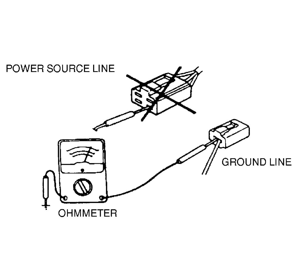 CAUTION:Do not connect a jumper wire from the power source line to a body ground. This may cause burning or other damage to wiring harnesses or electronic components.