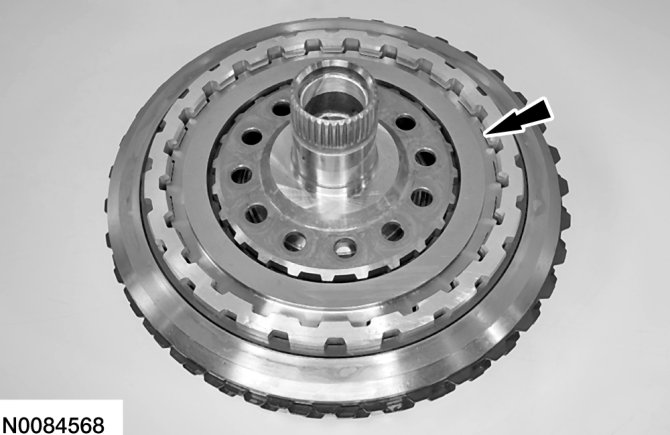 b. Lift the direct (3, 5, R) clutch so that the snap ring is in the groove of the pressure plate.