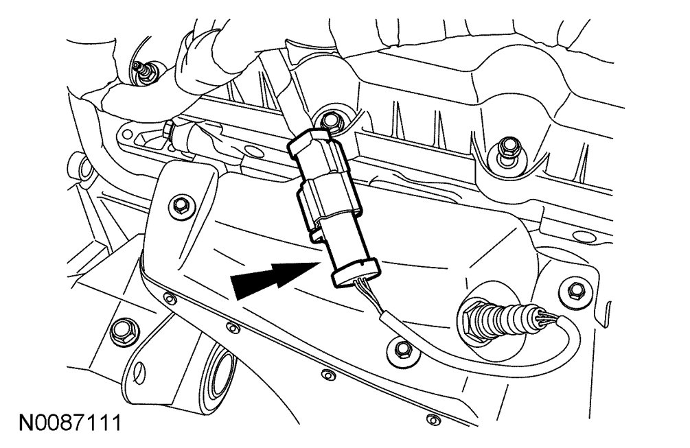 1. Disconnect the RH Variable Camshaft Timing (VCT) electrical connector.