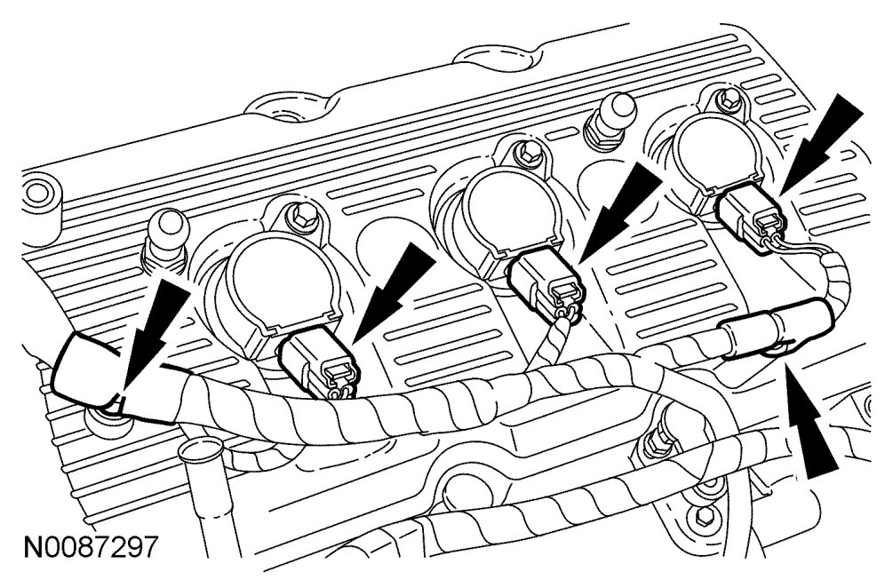 11. Disconnect the RH coil-on-plug electrical connectors.