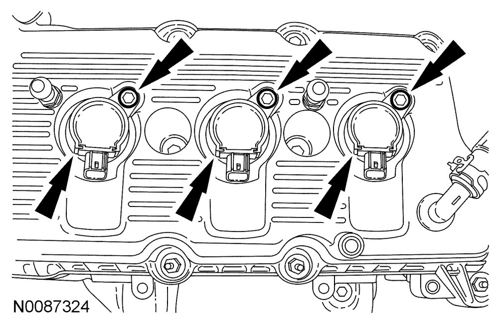 NOTE:When removing the coil-on-plugs, a slight twisting motion will break the seal and ease removal.