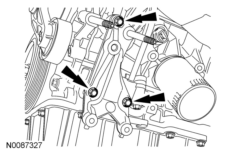 4. Remove the 3 bolts and the A/C compressor bracket.