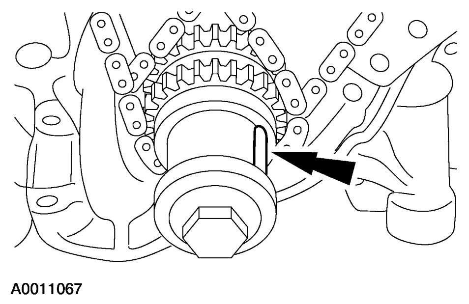 CAUTION:Do not allow the camshaft to rotate from the neutral position while removing the camshaft phaser and sprocket or damage to the engine may occur.