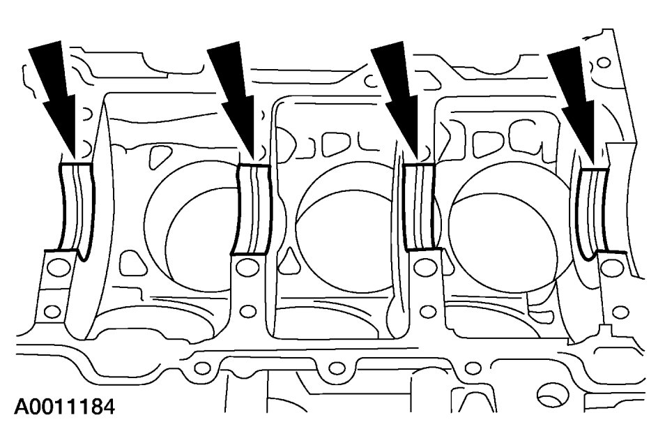 NOTE:If the main bearings are being reused, mark them for correct position and orientation for reassembly.