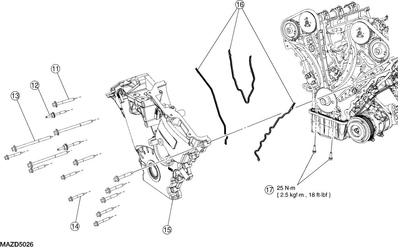 - Tighten to 25 Nm {2.5 kgf-m, 18 ft-lbf}.