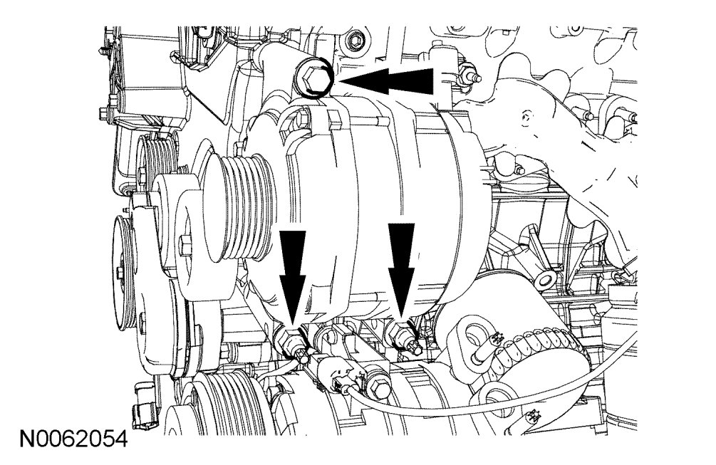 11. Install the accessory drive belt tensioner and the 3 bolts.