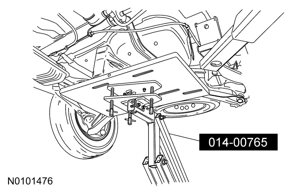 1. With the vehicle in NEUTRAL, position it on a hoist. See Lifting.
