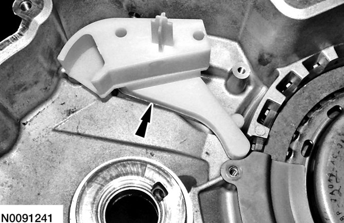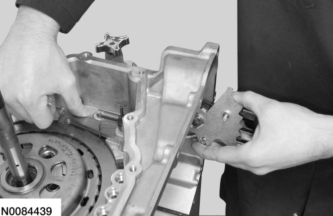 76. Position the transmission fluid baffle in place.