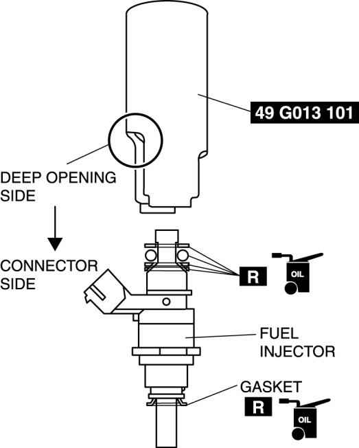 - When ratcheting up the fuel injector, the fuel injector connector may contact the cylinder head and damage the fuel injector. Ratchet up the fuel injector so that the fuel injector connector does not contact the cylinder head.