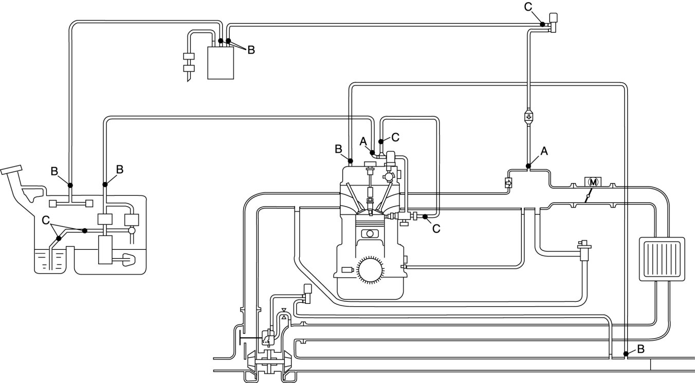 - To prevent evaporative gas leakage, be sure not to damage the connecting part between the charcoal canister and pipe, and the locks between the quick release connector and retainer. If any of them are damaged, replace the charcoal canister or hose with a new one.