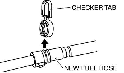 - A checker tab is integrated with the quick release connector for new fuel hoses and evaporative hoses. Remove the checker tab from the quick release connector after the connector is completely engaged with the fuel pipe.