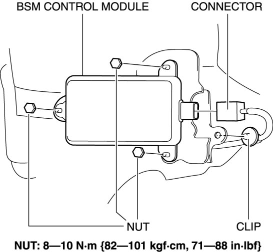 - If the BSM control modules are installed with the left and right modules reversed, a DTC will be displayed and system will enter the fail-safe function. Therefore, confirm that the left/right BSM control modules are installed correctly.