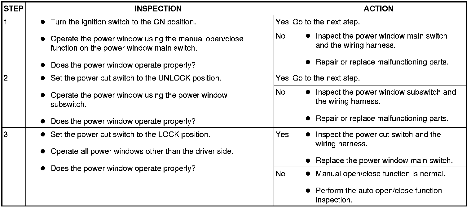 Auto Open/close Function (Driver's Side) Inspection