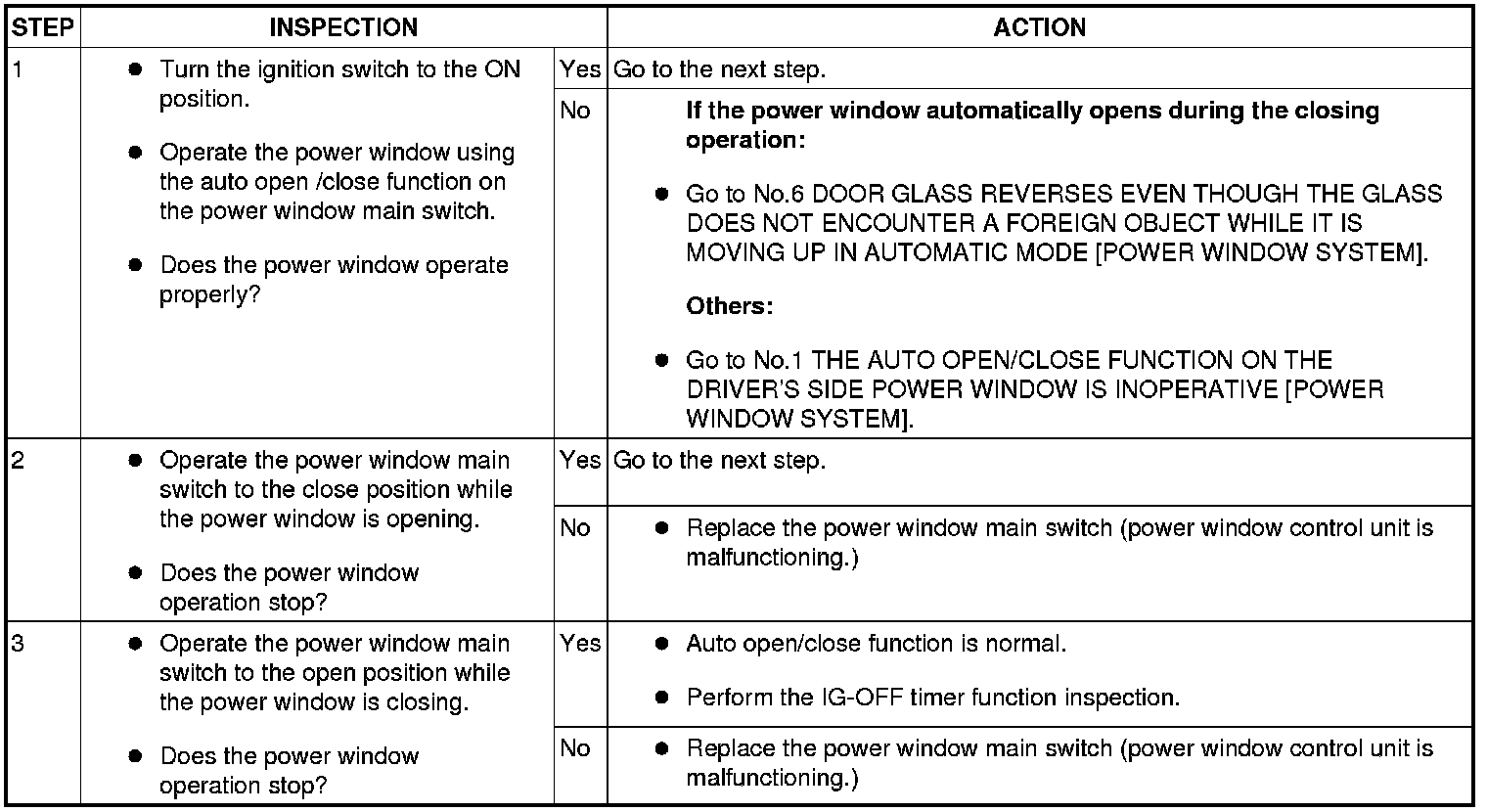 POWER WINDOW SYSTEM PRELIMINARY INSPECTION [POWER WINDOW SYSTEM]
