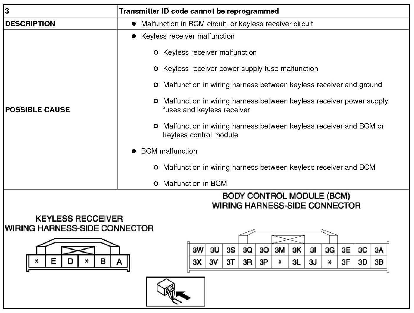 NO.3 TRANSMITTER ID CODE CANNOT BE REPROGRAMMED [KEYLESS ENTRY SYSTEM]