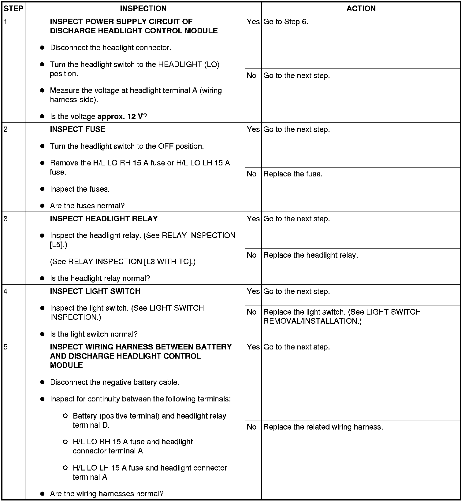 DISCHARGE HEADLIGHT SYSTEM INSPECTION