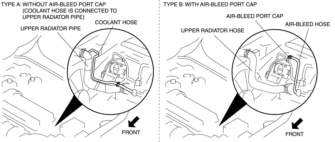a. If the engine coolant escapes from the air-bleed port or cooling system cap installation area, install the air-bleed port cap.