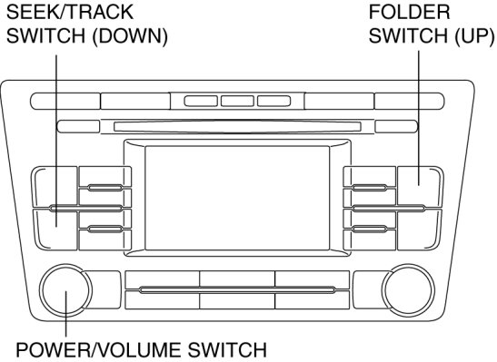 2. While pressing the POWER/VOLUME switch, simultaneously press the FOLDER switch (up) and SEEK/TRACK switch (down) for 3 s or more.