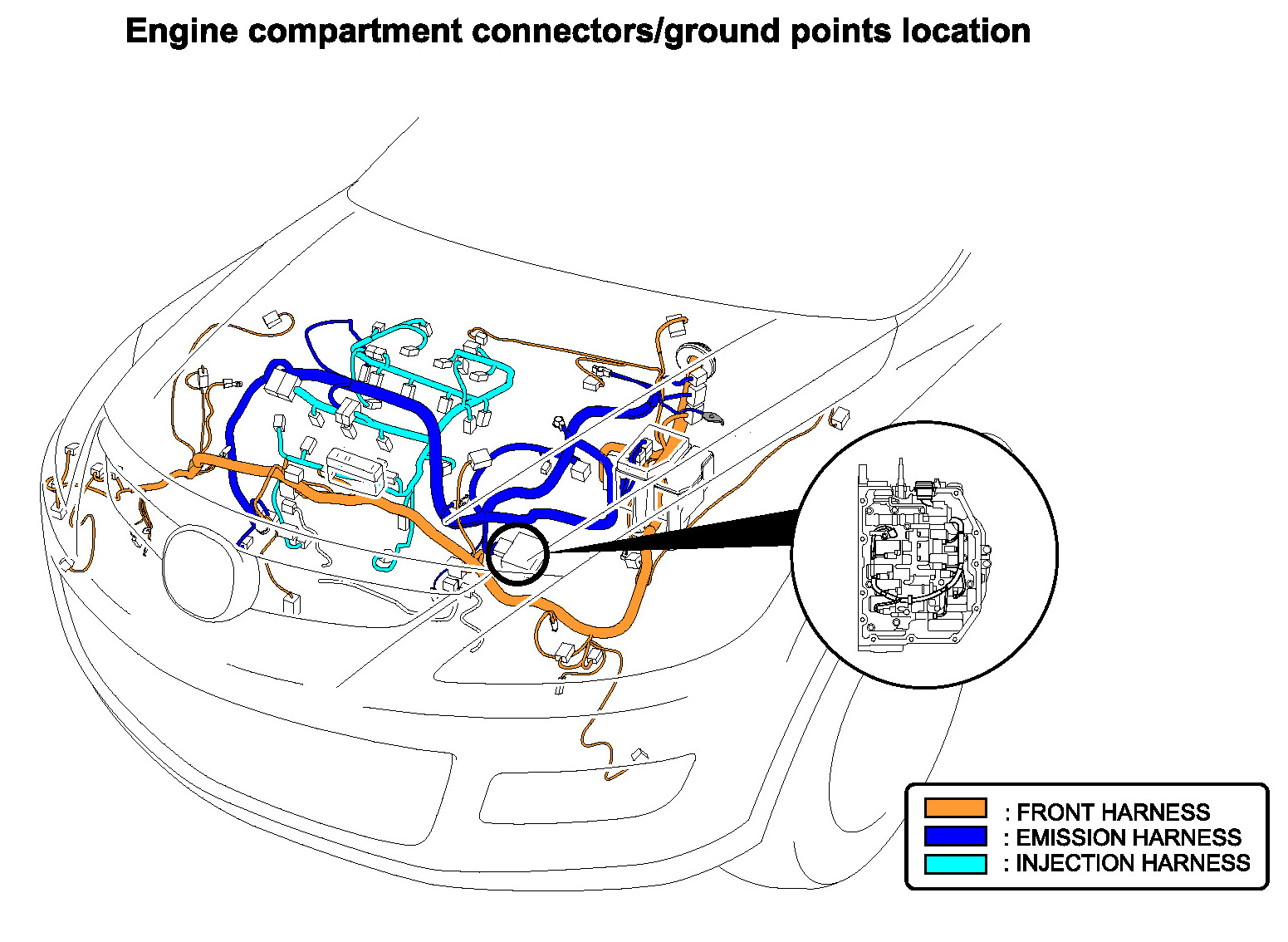 Engine Compartment Connectors/Ground Points Location