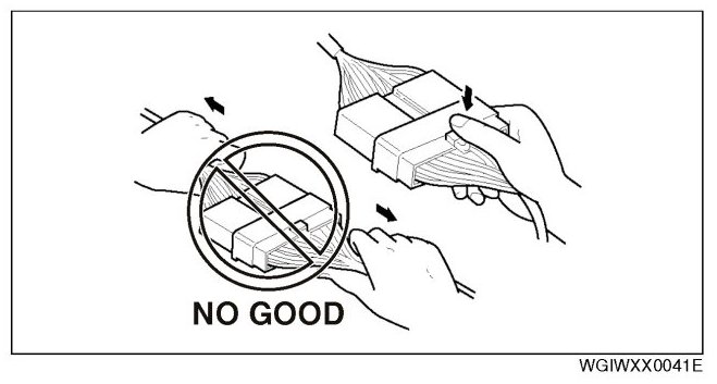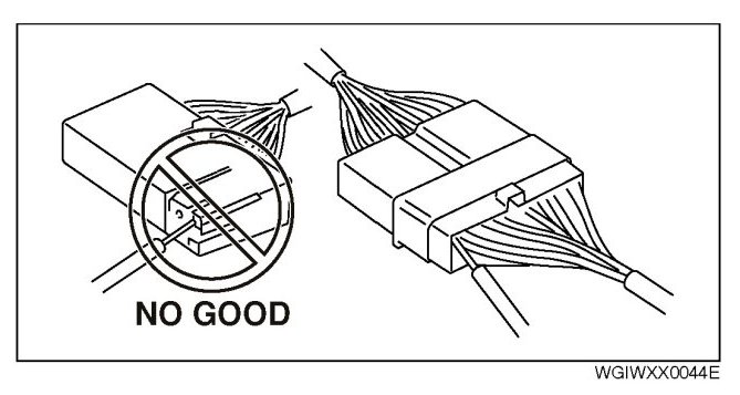 - Inspect the terminals of waterproof connectors from the connector side since they cannot be accessed from the wiring harness side.
