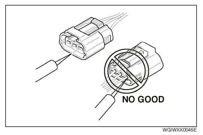 - When a tester is used to inspect for continuity or measuring voltage, insert the tester probe from the wiring harness side.