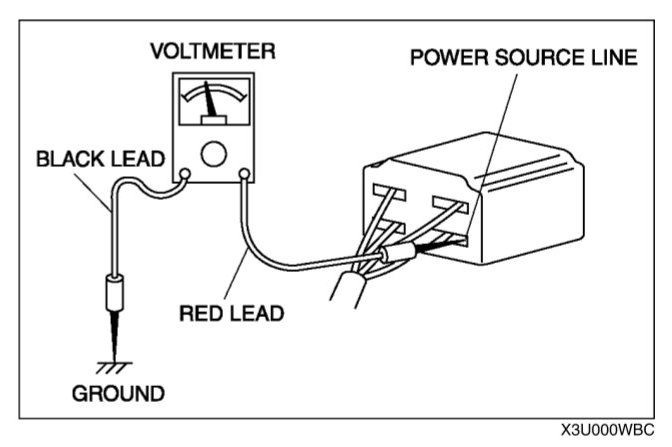 CAUTION: Do not connect a jumper wire from the power source line to a body ground. This may cause burning or other damage to wiring harnesses or electronic components.
