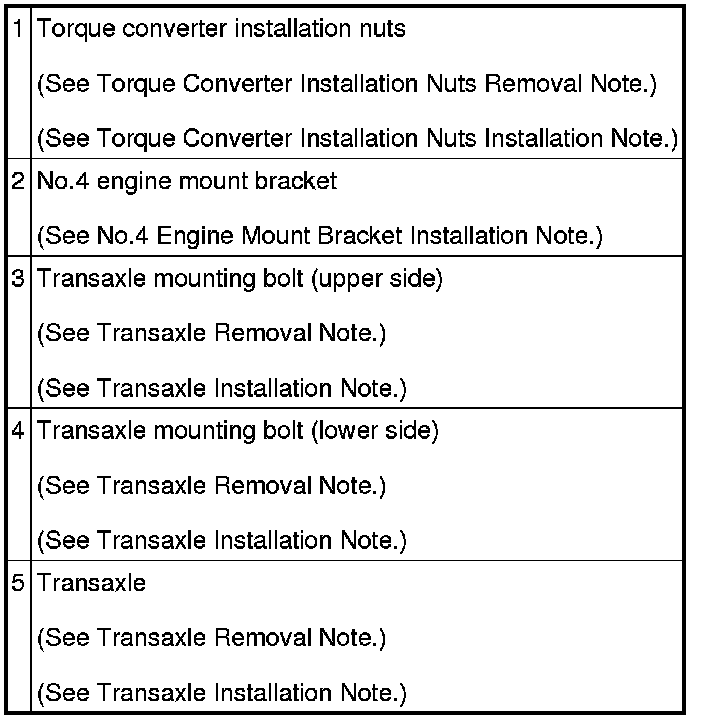 - To prevent the torque converter and transaxle from separating, remove the transaxle without tilting it toward the torque converter.