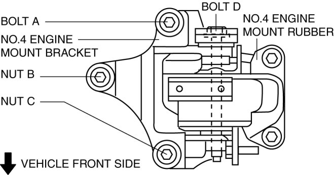 1. Install the No.4 engine mount bracket to the transaxle and temporarily tighten nuts.