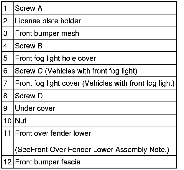 FRONT BUMPER DISASSEMBLY/ASSEMBLY