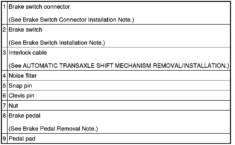 BRAKE PEDAL REMOVAL/INSTALLATION