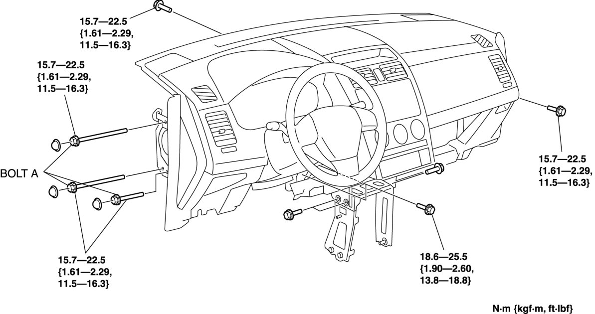- If the dashboard is moved towards the vehicle rear excessively, the wiring harness could be damaged. Mark the position and verify the distance when moving the dashboard.