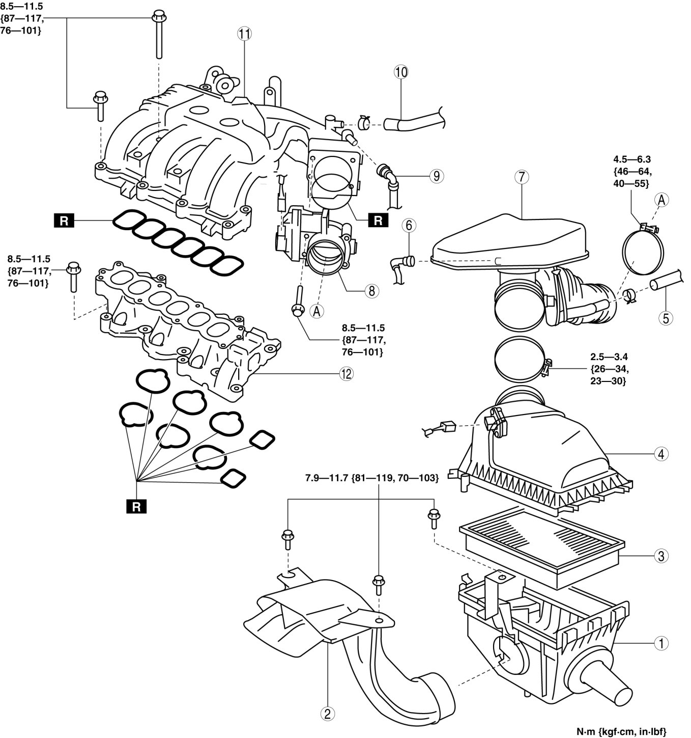 - 8.5-11.5 Nm {87-117 kgf-cm, 76-101 in-lbf}