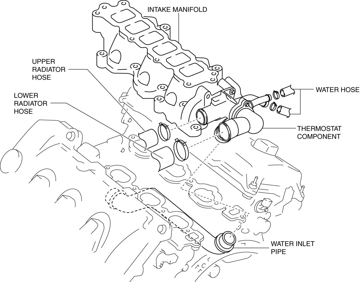 5. Remove the thermostat component from the intake manifold.