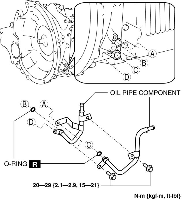 11. Remove the oil pipe component and O-rings.