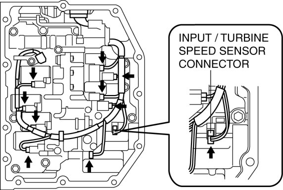15. Disconnect the solenoid connectors, VSS connector and the input/turbine speed sensor connector.