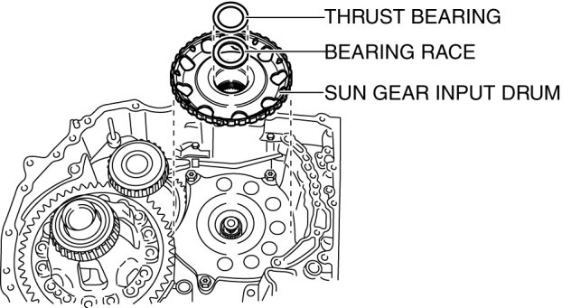31. Remove the thrust bearing, bearing race and the sun gear input drum.