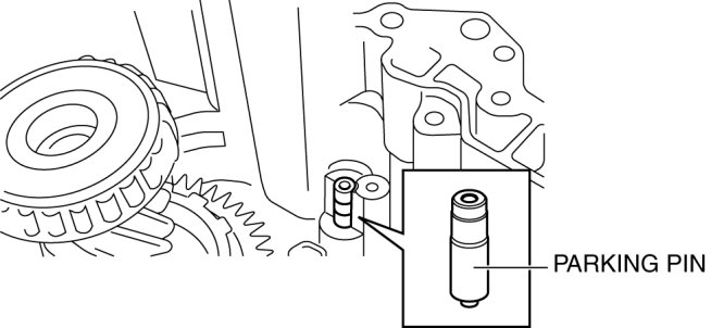 39. Remove the parking pin from the transaxle case.