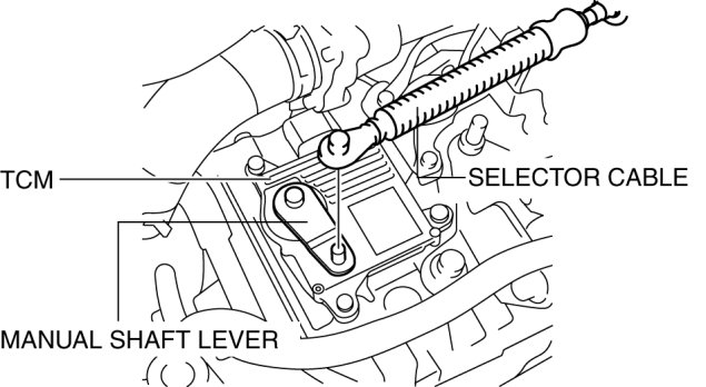 22. Install the selector cable to the manual shaft lever.