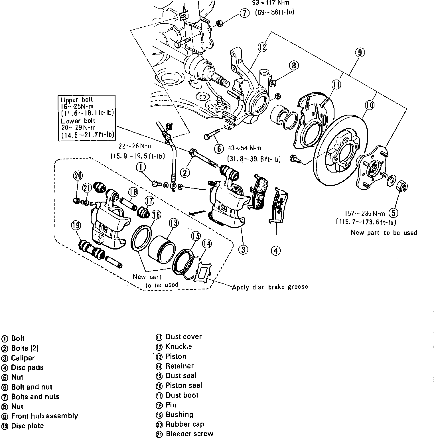 6. Replace rubber caps, bushing, dust boot, piston seal and dust seal.