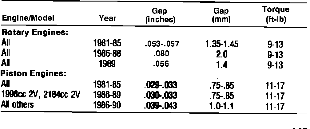 Fig. 6 Spark Plug Specifications: