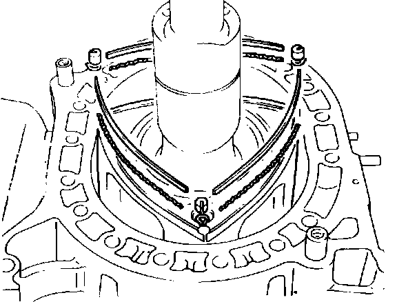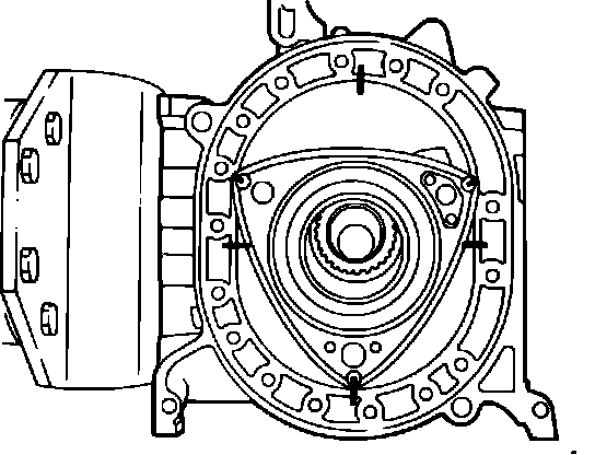 12. Install the rear housing on the rear rotor housing. Ensure side pieces of front and rear apex seals are not wedged between rotor housing and side housing.