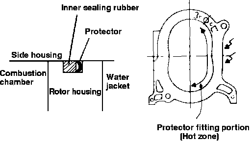7. Place new O-ring, sealing rubbers and protector on the rear side of the front rotor housing, as instructed under ``Front Rotor Housing.''