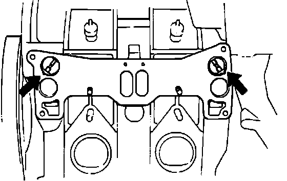 4. Remove attaching bolts from emission control valve mounting bracket located on top of engine.